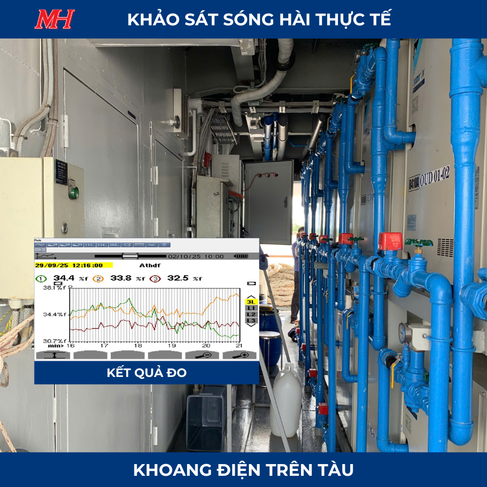 - Nguyên nhân: Khách hàng gặp vấn đề điện áp trên tàu không ổn định, thiết bị điện (đèn) nhấp nháy, nghi ngờ có sóng hài - thực tế sau khi đo đạc ghi nhận mức sóng hài cao - gây ra nhiễu hệ thống điện, và các ảnh hưởng khác lên thiết bị, chất lượng dịch vụ.