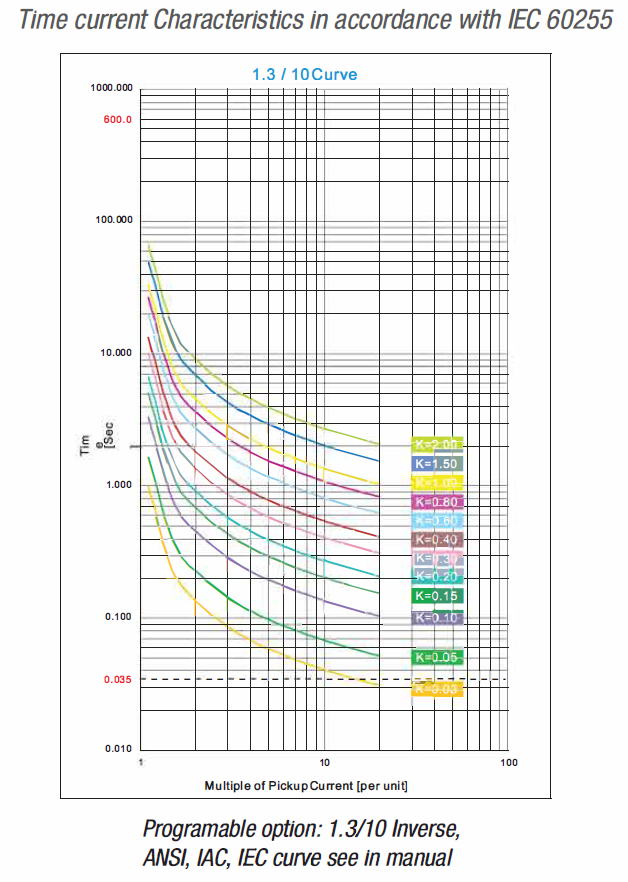 • Curve selection in accordance with ANSI, IAC, IEC, 1.3, DTL