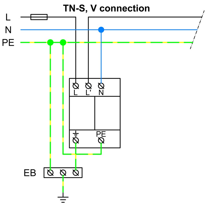 Minimum cross-section of connected Cu conductors accord. to HD 60364-5-53:2022 (doesn't apply to „V“ connection) for T2 S 2.5 mm² (L, N)