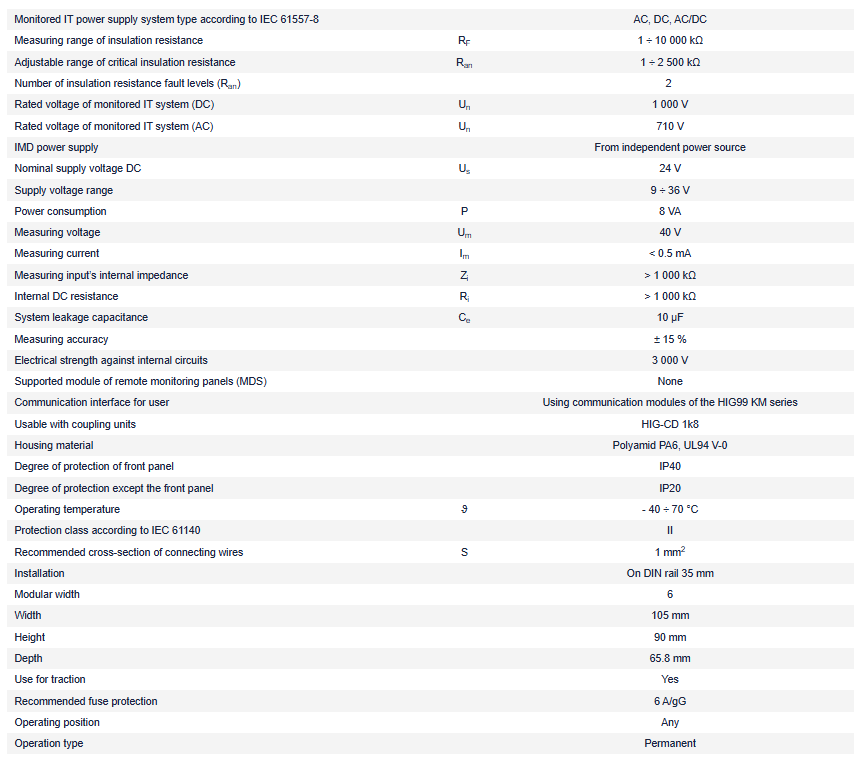 Thông số kỹ thuật Thiết bị giám sát cách ly dùng cho hệ thống đường sắt cao tốc - IMD - HIG99: